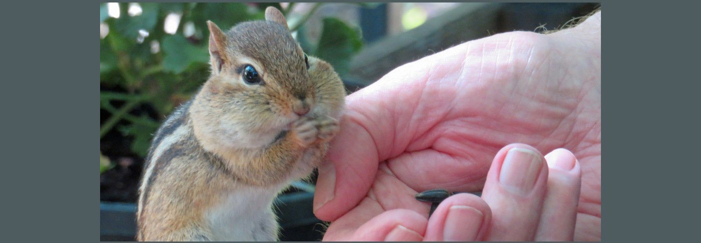 My husband and I were Chipper’s main supplier of food. I tried throwing down some stale bird seed one day to get rid of it, expecting Chipper to collect it all up in his cheeks and stash it away. But no, he took one sniff and passed it up. He recognized the danger of what had been presented to him and would have none of it. I was ashamed of having even offered it to him.